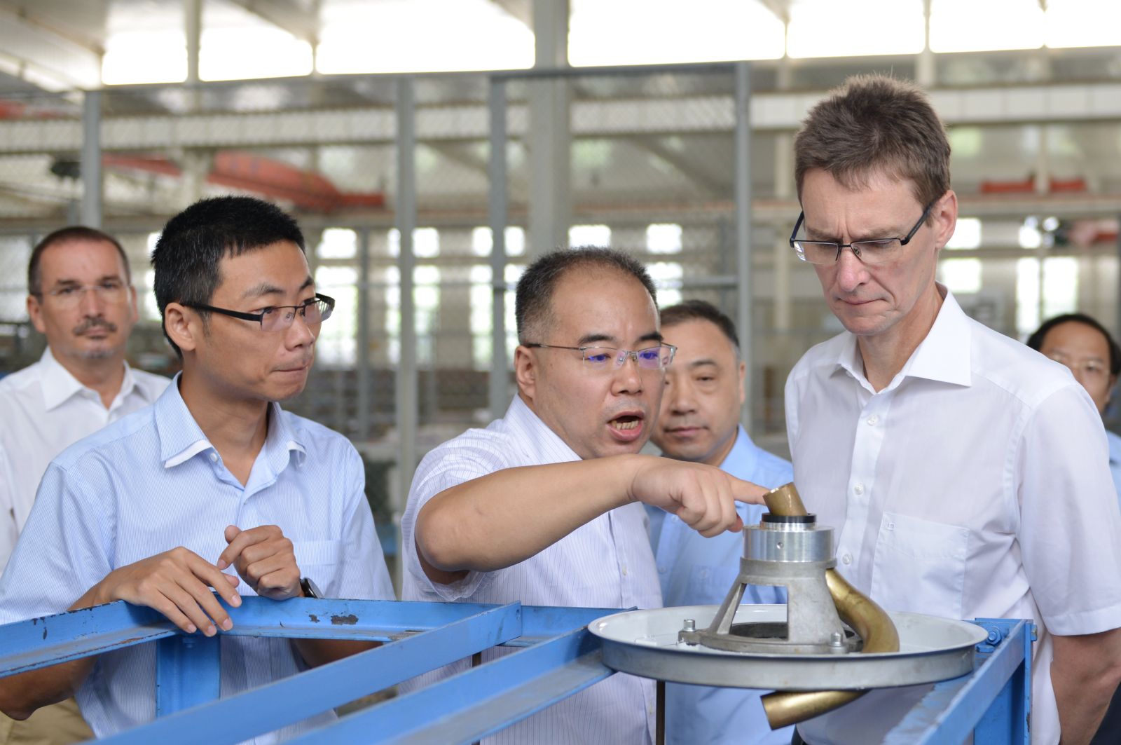 8月31日,卓郎集團產(chǎn)品戰(zhàn)略官Mr.Peter Trinkl一行5人對天門紡機進行了考察。公司總經(jīng)理焦倫進陪同卓郎客人參觀了公司生產(chǎn)現(xiàn)場及產(chǎn)品實驗中心,并從公司產(chǎn)品研發(fā)設(shè)計過程、產(chǎn)品制造及質(zhì)量控制、產(chǎn)品特點、發(fā)展目標(biāo)等方面向卓郎客人作了詳細(xì)介紹。卓郎集團主要從事新型紡紗機械的設(shè)計、制造和銷售,他們此行的目的主要是為拓寬業(yè)務(wù),與天門紡機洽談合作事宜。在考察期間,Mr.Peter Trinkl等客人對公司的生產(chǎn)現(xiàn)場、管理水平及企業(yè)文化贊不絕口,當(dāng)天雙方就簽訂了10臺TMFD81S并條機合同,相信后期的合作會有更多的驚喜。