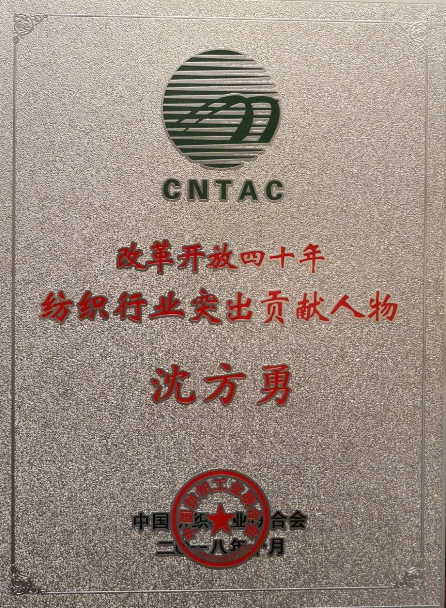 改革開放四十年,紡織工業(yè)歷經(jīng)風雨洗禮,取得了一系列舉世矚目的發(fā)展成就,涌現(xiàn)出一批扎根行業(yè)深處、為行業(yè)發(fā)展貢獻畢生力量的突出貢獻人物。中國紡織工業(yè)聯(lián)合會為樹立責任擔當、凝聚力量的行業(yè)典范,弘揚改革創(chuàng)新、開放包容的時代精神,開展了改革開放四十年紡織行業(yè)突出貢獻人物的評選、表彰活動,并于2018年10月16日在上海召開的第四屆第四次常務理事擴大會上舉行了授牌儀式。湖北天門紡織機械股份有限公司董事長沈方勇有幸成為登臺領獎的代表之一。