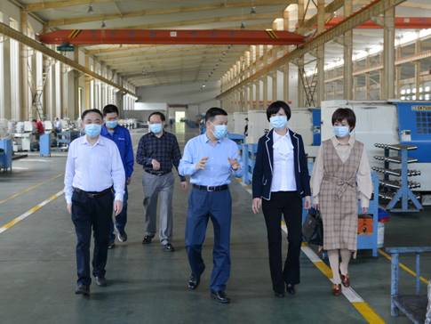 4月16日,天門市委常委、統(tǒng)戰(zhàn)部長(zhǎng)劉春霞到天門紡機(jī)調(diào)研,在公司董事長(zhǎng)沈方勇、總經(jīng)理焦倫進(jìn)、黨委書記魯?shù)挛呐阃拢M(jìn)到生產(chǎn)車間,了解掌握企業(yè)防疫和復(fù)工復(fù)產(chǎn)情況。