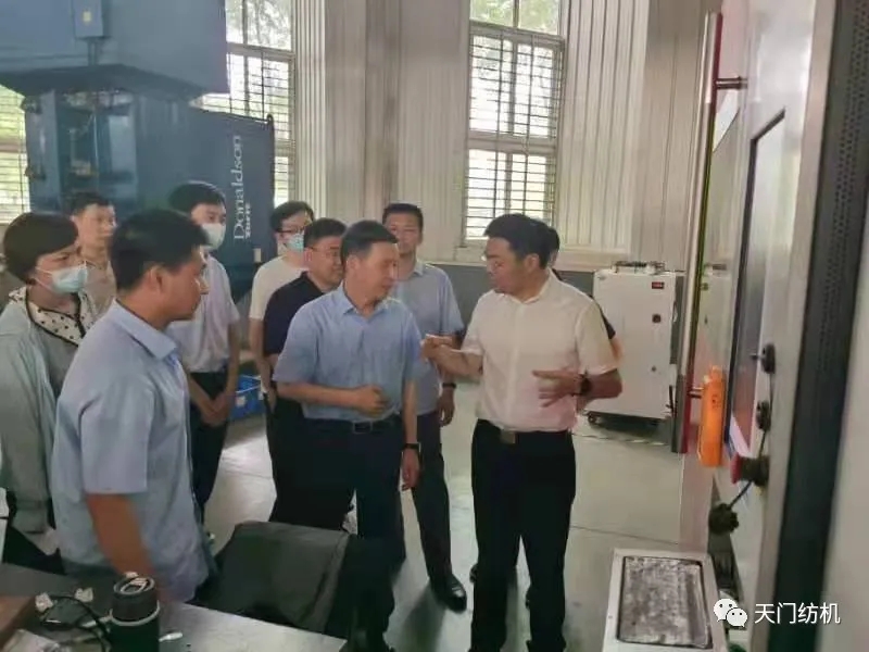 6月15日,酷暑炎熱,天門(mén)市委副書(shū)記、市長(zhǎng)楊興銘,副市長(zhǎng)高文博以及市經(jīng)信局、市科技局、市政務(wù)服務(wù)和大數(shù)據(jù)管理局、市經(jīng)濟(jì)開(kāi)發(fā)區(qū)等相關(guān)部門(mén)負(fù)責(zé)人專程來(lái)到天門(mén)紡機(jī),現(xiàn)場(chǎng)調(diào)研技術(shù)裝備改造升級(jí)和安全生產(chǎn)工作。
