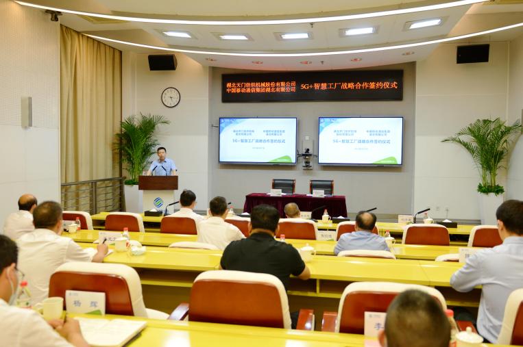 天門市委常委副市長曾令慧、經(jīng)信局副局長宋鵬等領(lǐng)導出席了簽約式,全國人大代表天門紡機董事長沈方勇、全國人大代表湖北移動黨委書記董事長范秉衡分別致辭,天門紡機總經(jīng)理焦倫進、湖北移動副總經(jīng)理劉焱宇簽署了“5G+智慧工廠”戰(zhàn)略合作框架協(xié)議書。