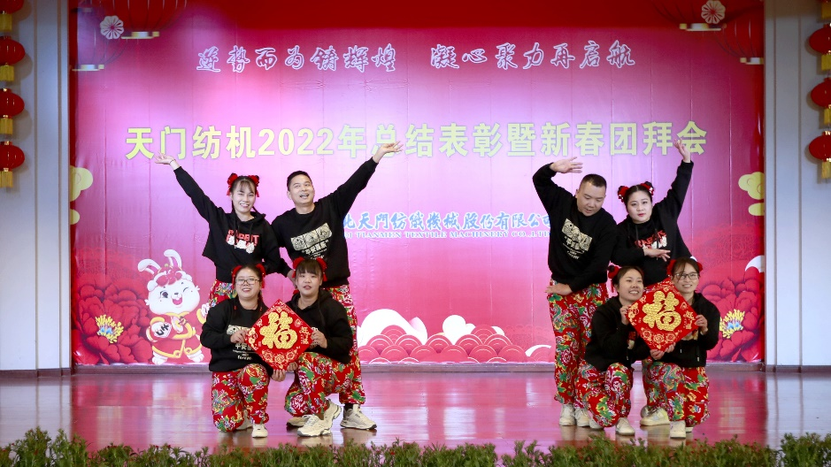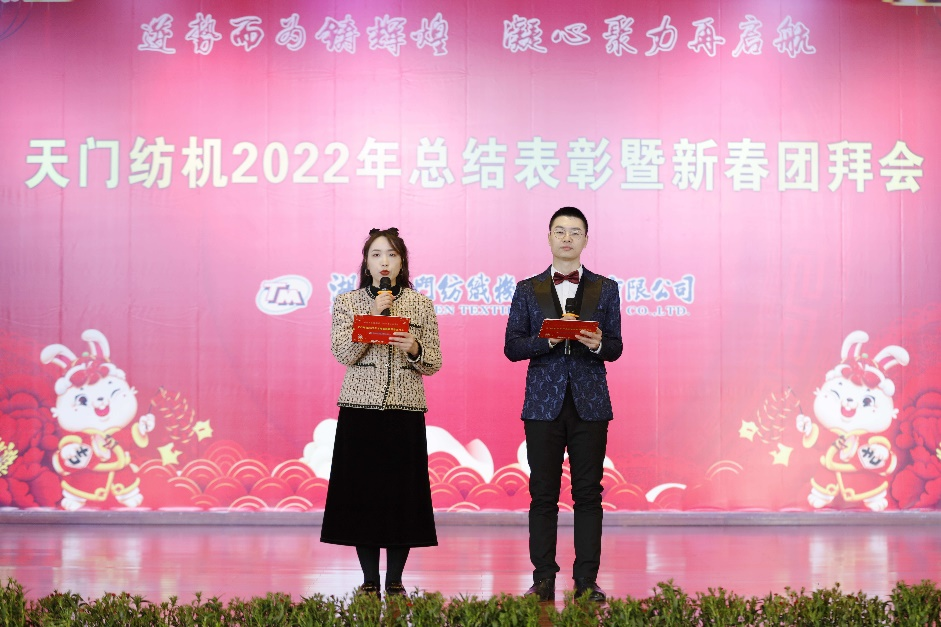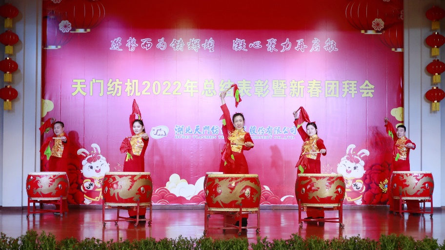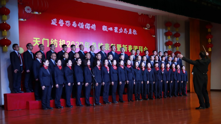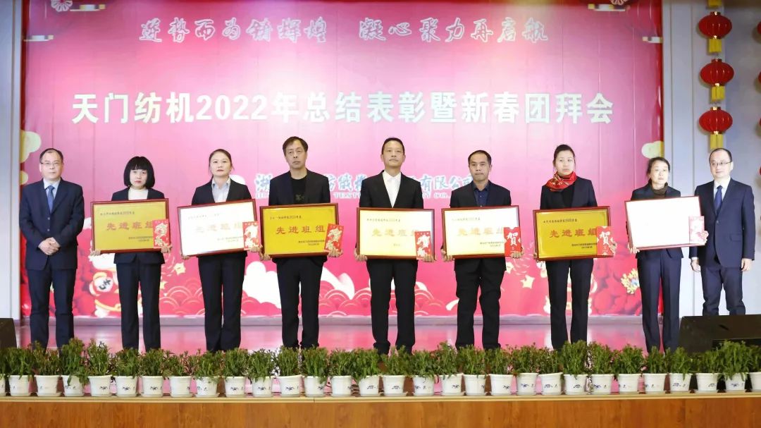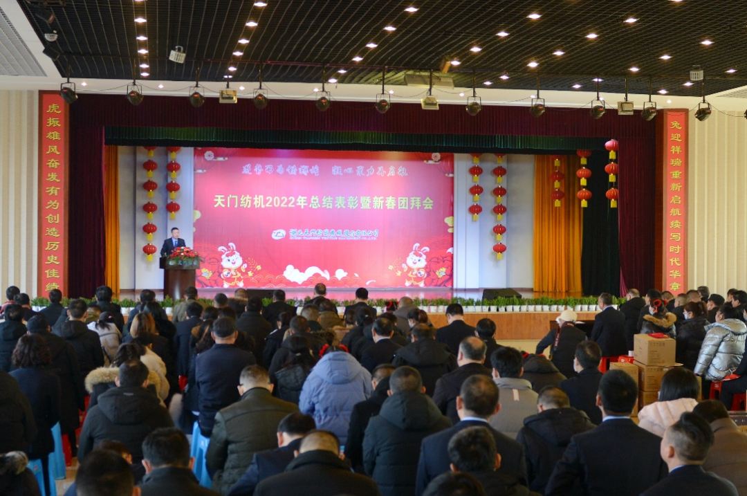 2023年1月18日下午,天門紡機艷陽高照、喜氣盈門,2022年工作總結(jié)表彰暨新春團拜會在綜合樓多功能廳隆重舉行。