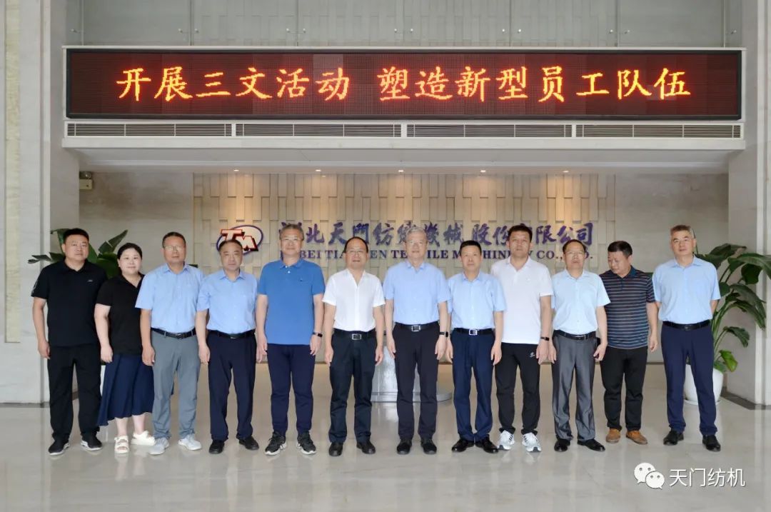 2023年6月27日下午,中國(guó)紡織工業(yè)聯(lián)合會(huì)秘書長(zhǎng)夏令敏,中國(guó)紡織工業(yè)聯(lián)合會(huì)流通分會(huì)副會(huì)長(zhǎng)徐建華、秘書長(zhǎng)王水元蒞臨天門紡機(jī)調(diào)研,湖北省經(jīng)信廳副廳長(zhǎng)周開斌、消費(fèi)品工業(yè)處副處長(zhǎng)鄧龍陪同調(diào)研。