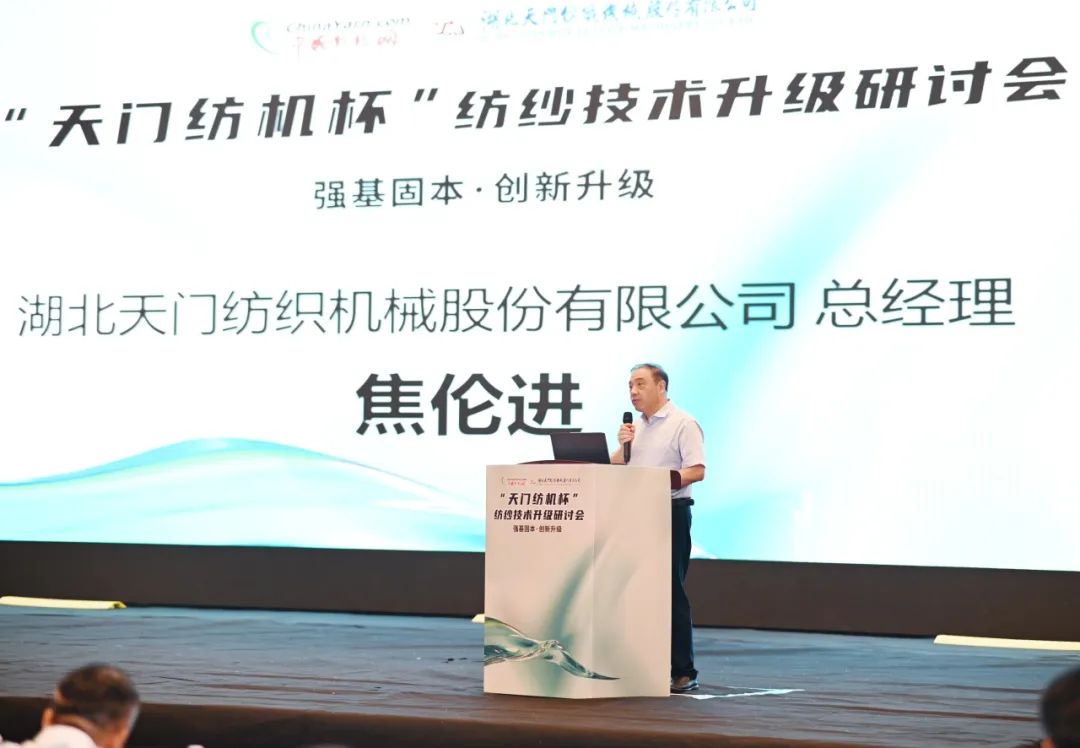 天門紡機(jī)總經(jīng)理焦倫進(jìn)向蒞臨會議的領(lǐng)導(dǎo)、嘉賓及長期關(guān)心支持天門紡機(jī)發(fā)展的各界同仁朋友表達(dá)了誠摯的謝意,他表示,天門紡機(jī)“生產(chǎn)制造柔性化、倉儲物流自動化、信息管理現(xiàn)代化”的5G+智慧工廠項(xiàng)目正在不斷向前推進(jìn),我們將通過自身的數(shù)字化轉(zhuǎn)型與智能化改造,為紡織企業(yè)數(shù)字化轉(zhuǎn)型和智能化改造持續(xù)提供裝備基礎(chǔ)。并作了題為《并條機(jī)的創(chuàng)新與應(yīng)用助力紡企高質(zhì)量發(fā)展》的專題報(bào)告。他交流了天門紡機(jī)堅(jiān)定不移走“專精特新”之路的工作經(jīng)驗(yàn),分享了勻整控制、在線監(jiān)控、5G+物聯(lián)網(wǎng)、自動熱交換降溫系統(tǒng)等技術(shù)創(chuàng)新成果。