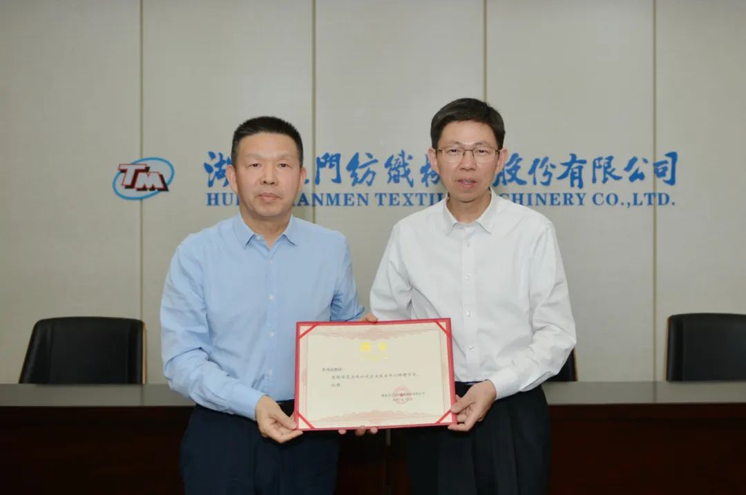 座談會(huì)后,沈董事長(zhǎng)代表天門紡機(jī)向單教授等3位老師頒發(fā)了特聘專家證書。