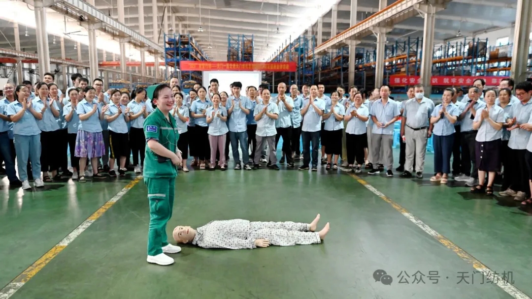 室外赤日炎炎,酷暑難當(dāng);室內(nèi)座無(wú)虛席,氣氛熱烈。2024年7月17日下午,天門紡機(jī)在生產(chǎn)現(xiàn)場(chǎng)組織了一場(chǎng)別開生面的健康知識(shí)及急救技能培訓(xùn)活動(dòng),天門市第一人民醫(yī)院的多位醫(yī)療專家應(yīng)邀來(lái)公司進(jìn)行健康知識(shí)講座和急救實(shí)操演示。