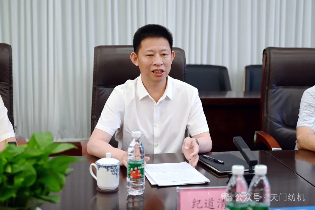 2024年8月27日,湖北省十三屆人大常委會(huì)黨組書記、副主任、十四屆全國(guó)人大代表王玲攜同十三、十四屆全國(guó)人大代表李霞,在天門市委書記、市人大常委會(huì)主任紀(jì)道清 ,市人大常委會(huì)黨組書記、副主任董清平,市委常委、秘書長(zhǎng)高文博的陪同下調(diào)研了天門紡機(jī)及天門服裝電商產(chǎn)業(yè)園,十三屆全國(guó)人大代表、天門紡機(jī)董事長(zhǎng)沈方勇全程陪同調(diào)研。