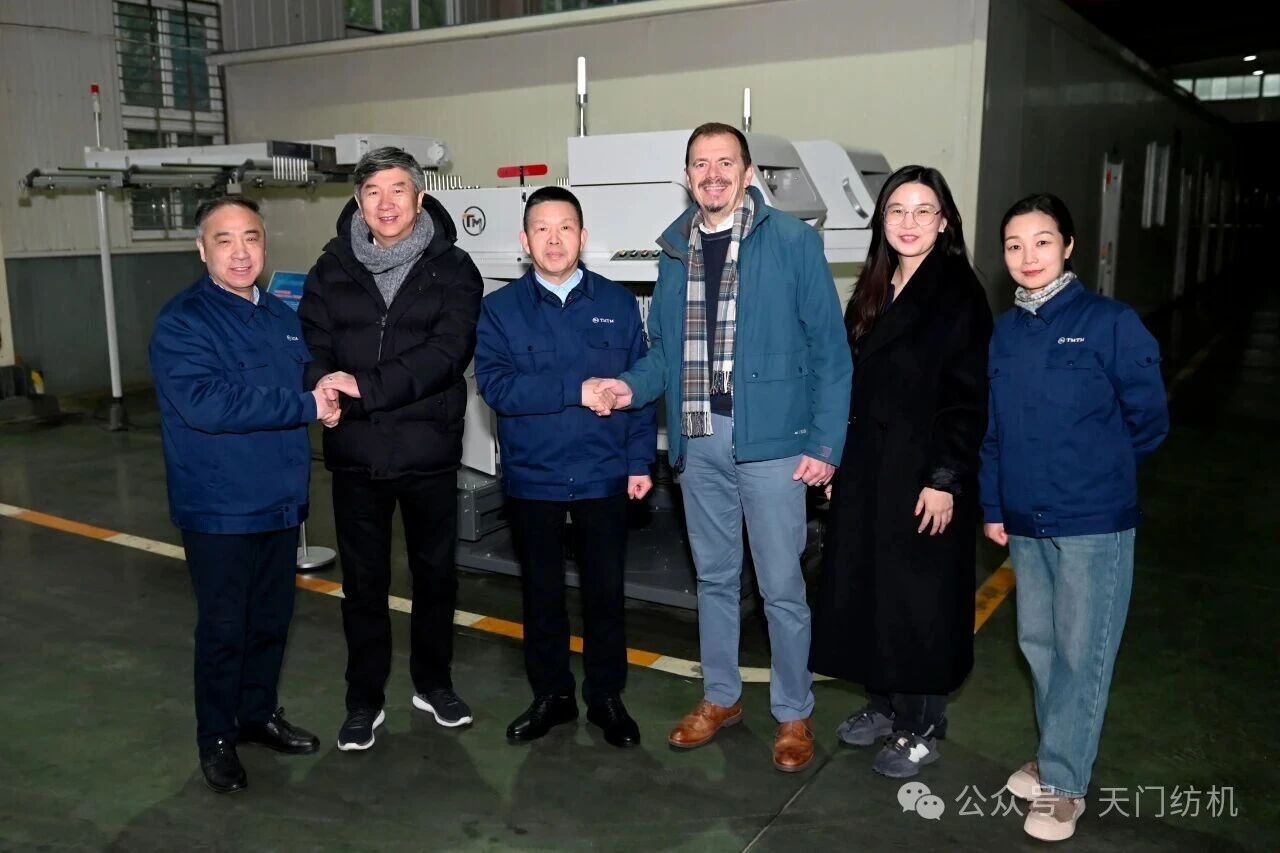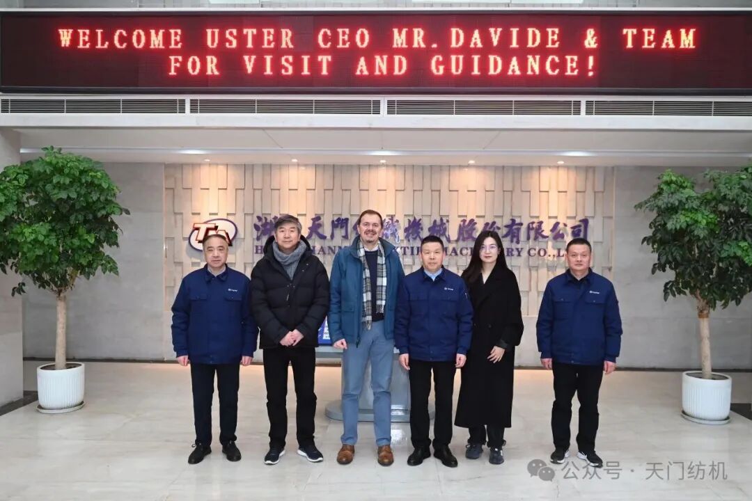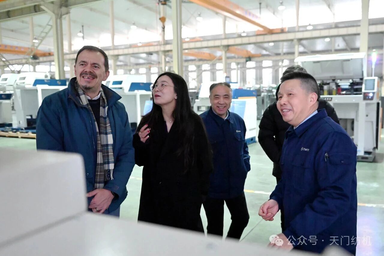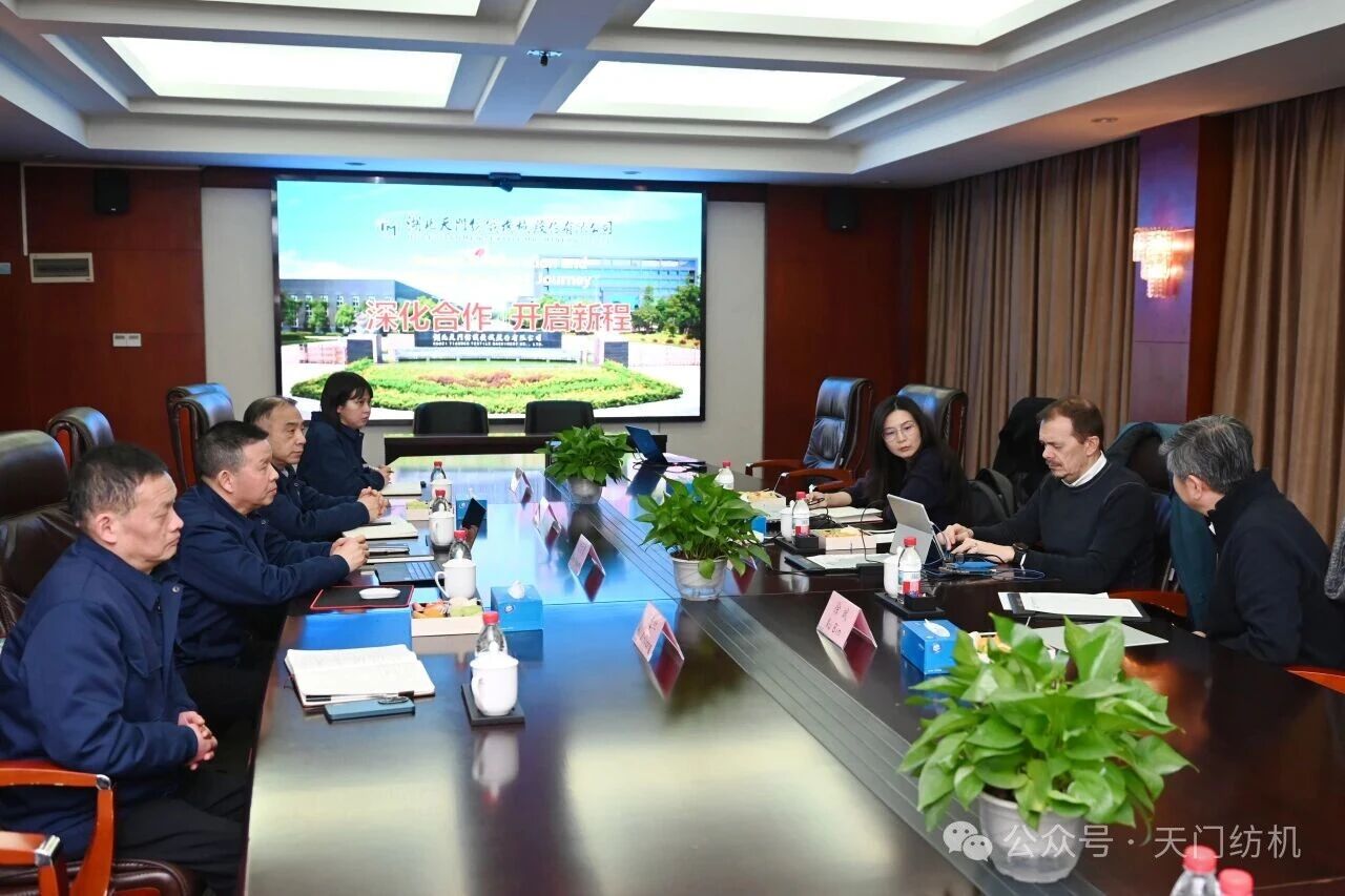 2026年2月4日,烏斯特技術(shù)集團(tuán)首席執(zhí)行官Davide Maccabruni、執(zhí)行副總裁及中國(guó)運(yùn)營(yíng)總裁徐斌、產(chǎn)品經(jīng)理謝琦一行專程到訪天門紡機(jī)進(jìn)行考察交流,公司董事長(zhǎng)沈方勇等領(lǐng)導(dǎo)熱情接待到訪客人。