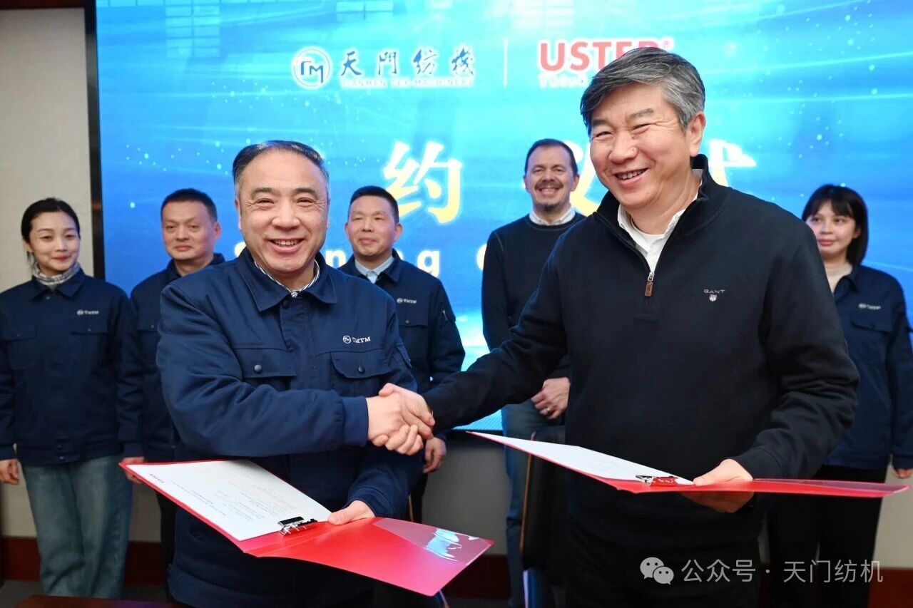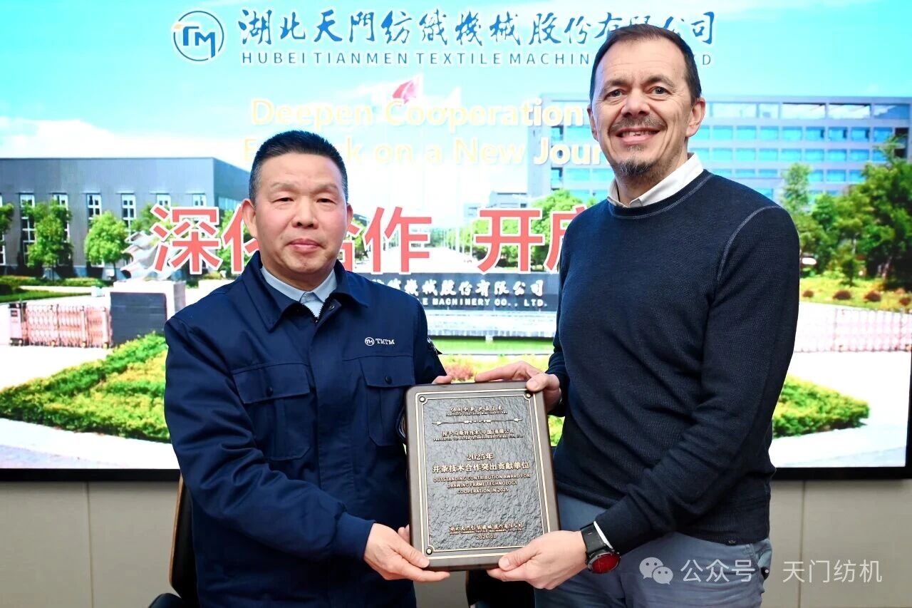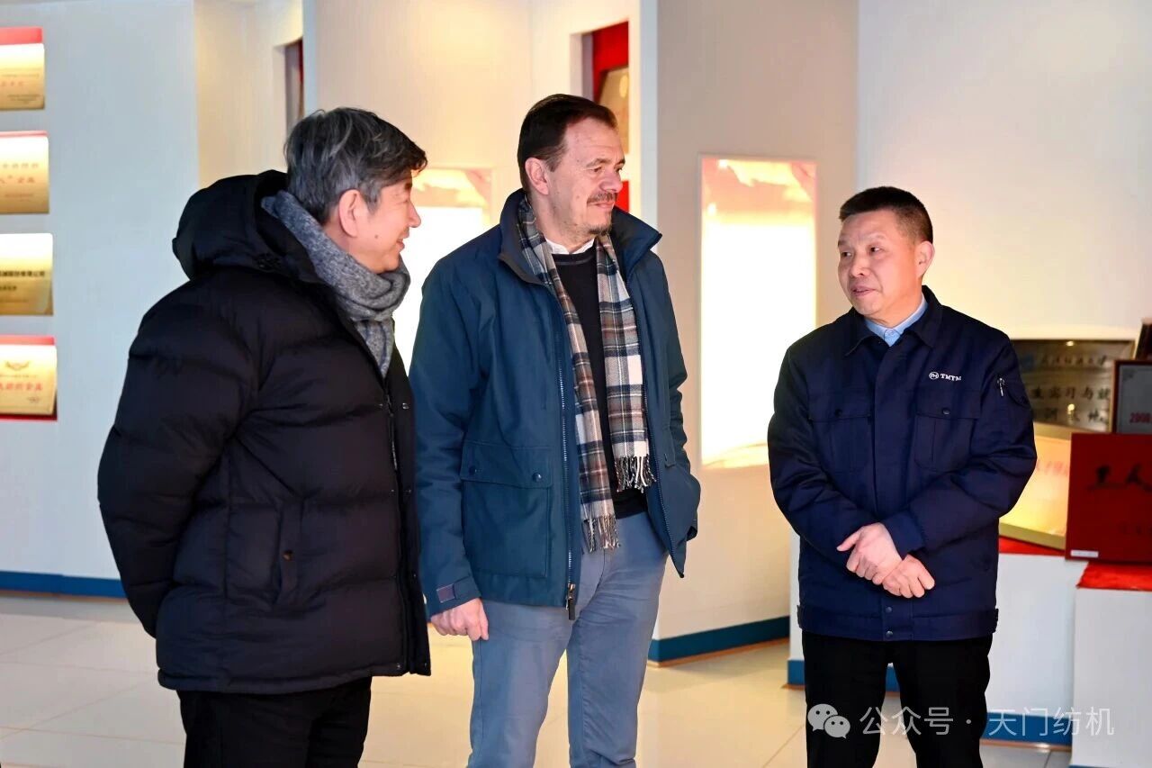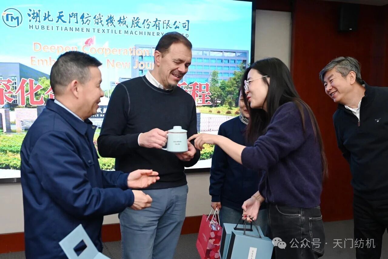 2026年2月4日,烏斯特技術(shù)集團(tuán)首席執(zhí)行官Davide Maccabruni、執(zhí)行副總裁及中國(guó)運(yùn)營(yíng)總裁徐斌、產(chǎn)品經(jīng)理謝琦一行專程到訪天門紡機(jī)進(jìn)行考察交流,公司董事長(zhǎng)沈方勇等領(lǐng)導(dǎo)熱情接待到訪客人。